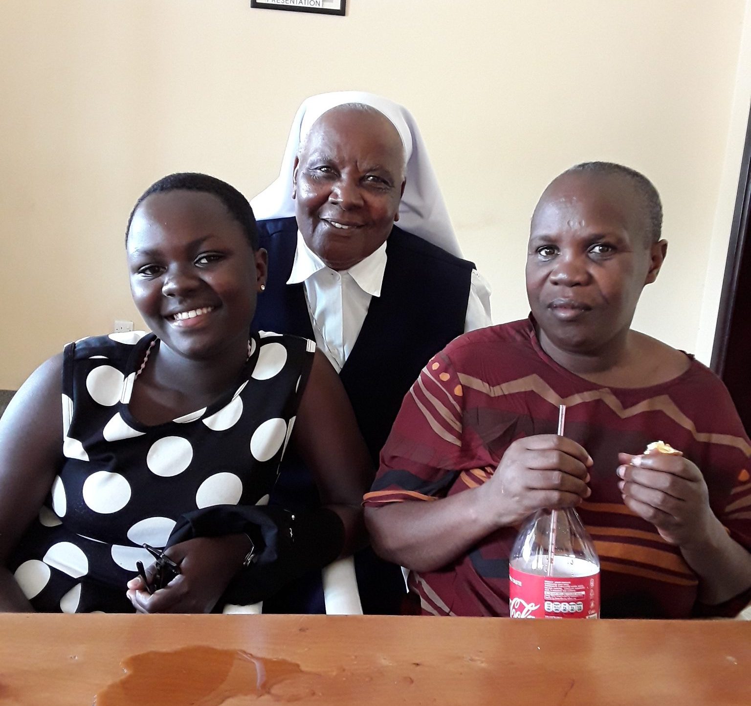 Program Administrator, Sr. Lilian, smiles for a photo with Christine and her mother