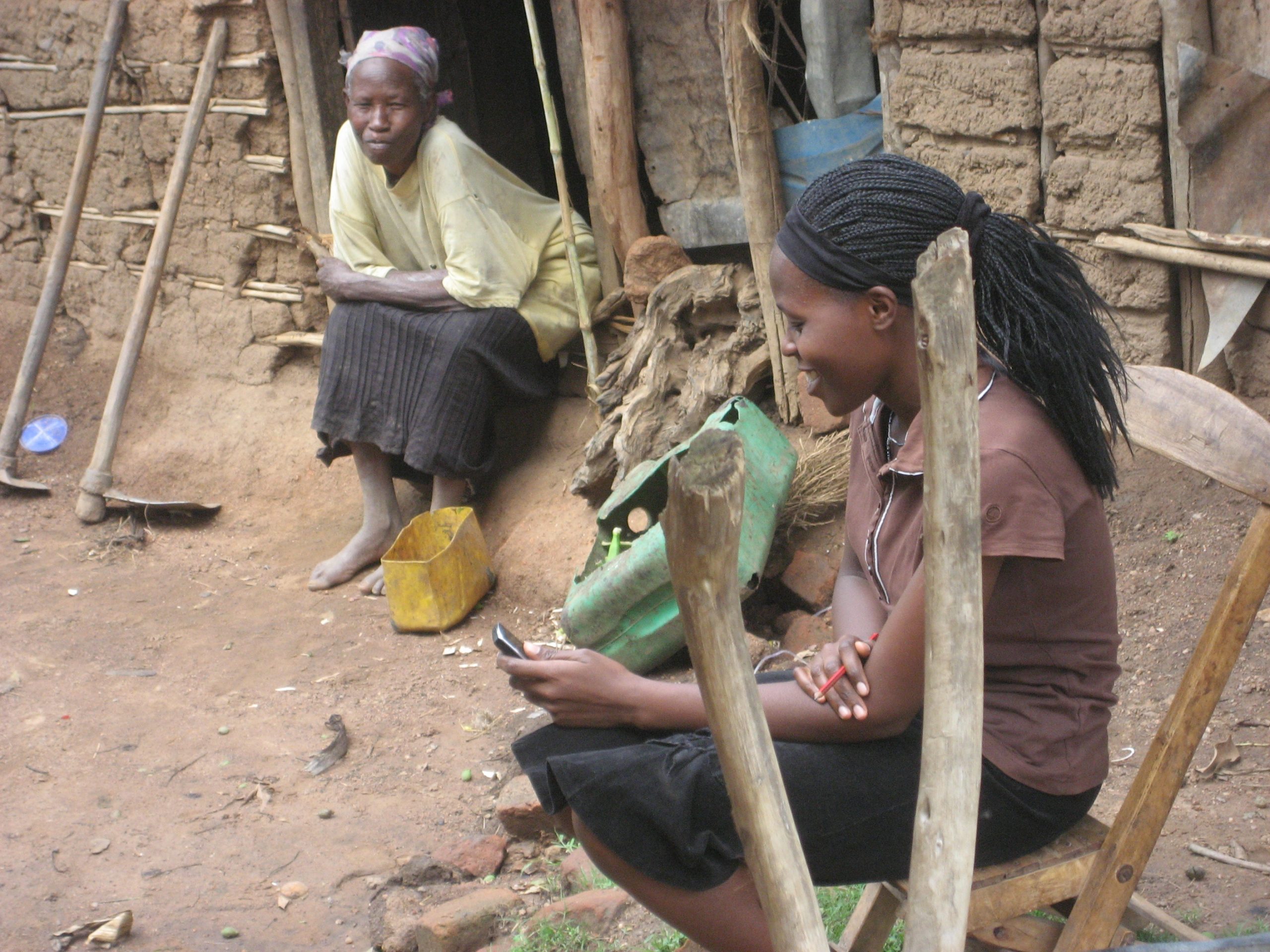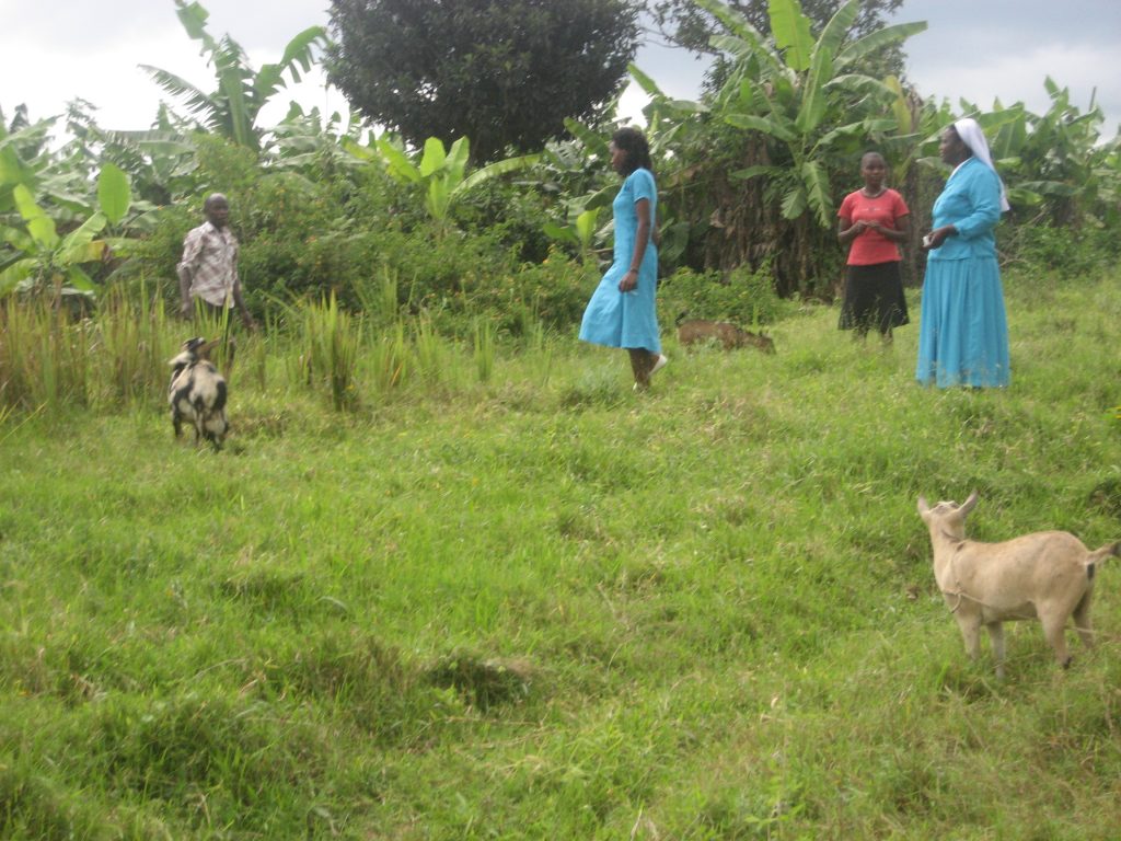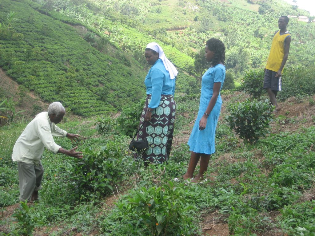 OVC Mbarara Field Officer monitoring the income-generating projects of caretakers (in this case, it was growing passion fruits)