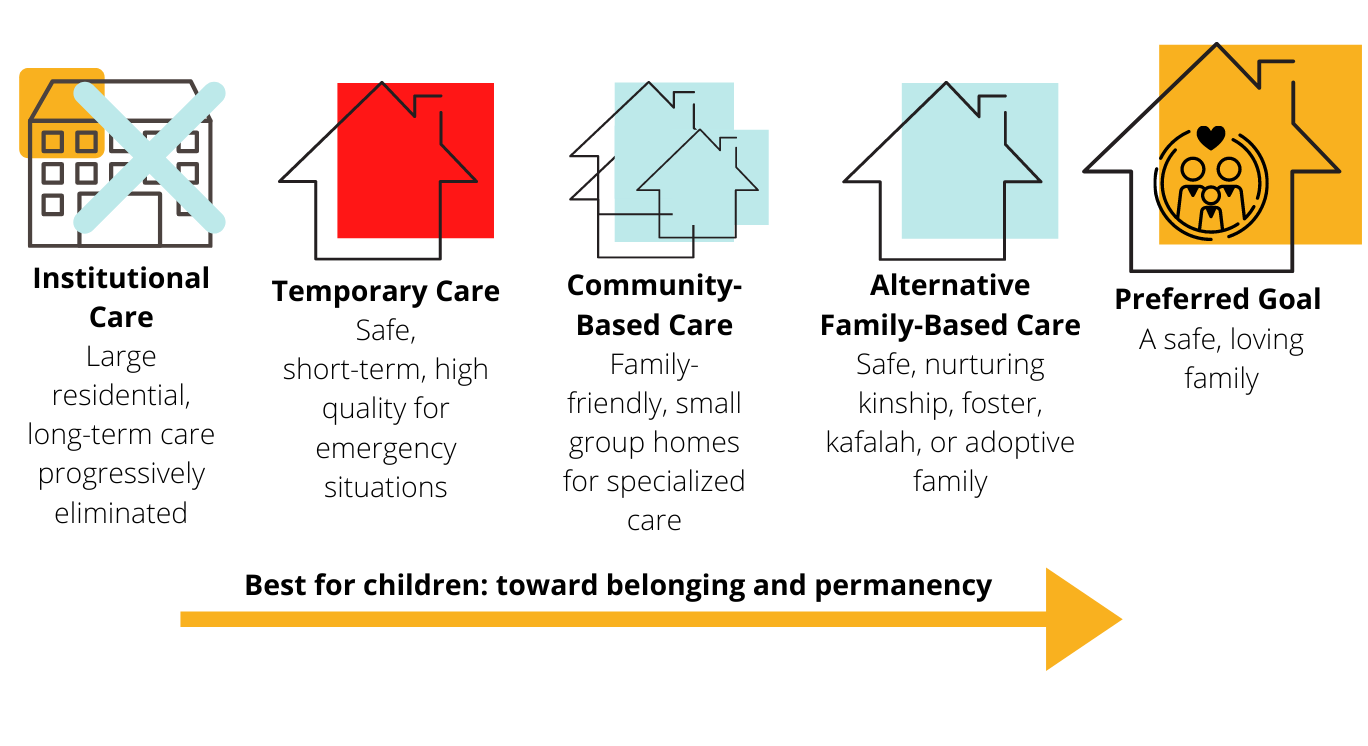 Children have the best chance to thrive when they grow up in a family. That's why we're committed to strengthening families, and we are now shifting towards a family-based care model.